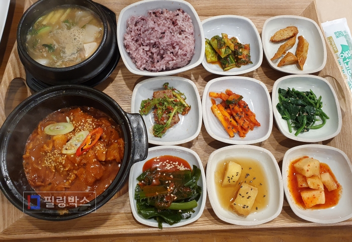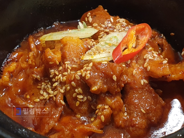 한식당 백반에는 제육이 나옵니다.
