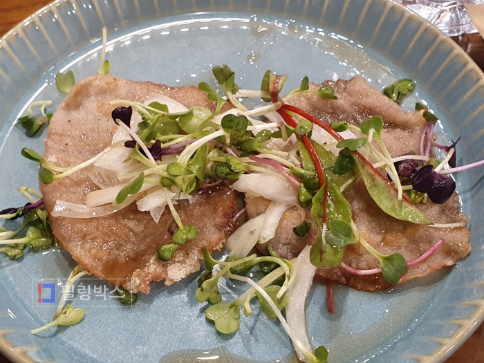이어 해물파전이 나옵니다. 맛있어서 술 안주로 먹어도 좋겠다는 생각이 듭니다.